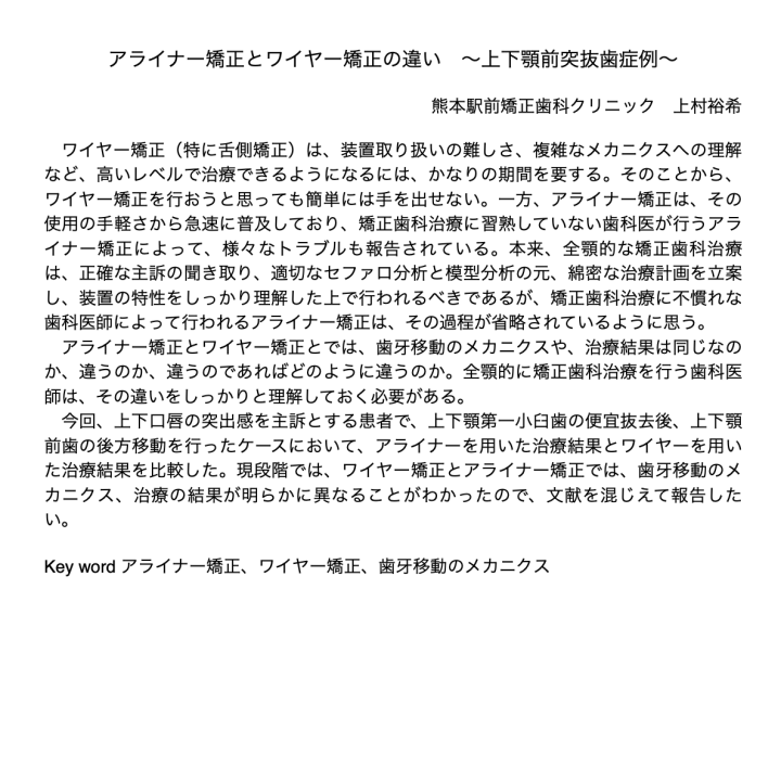 アライナー矯正治療は歯性の不正咬合には患者にも術者にも快適に治療ゴールに達するメリットがある反面、適応症を外れると、アライナーだけでは改善が困難となる、適切な審査診断とDBS等によるフォロー体制があることが肝要である。